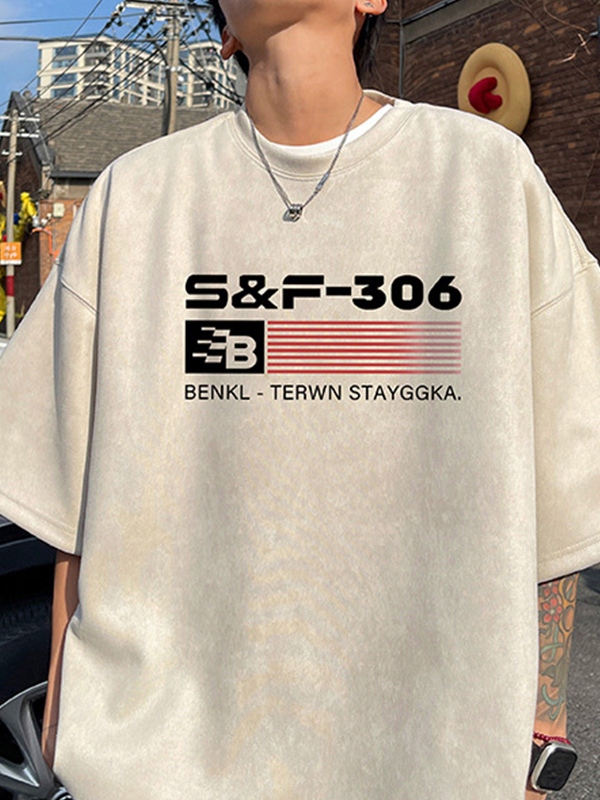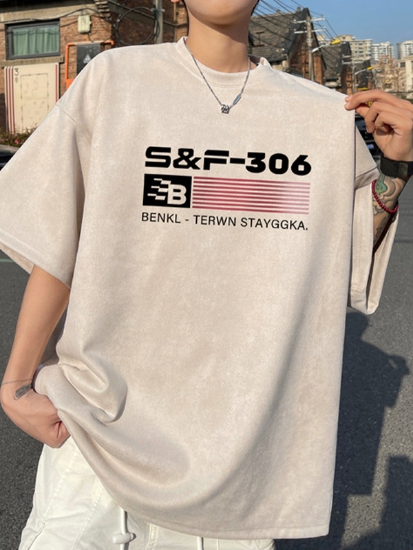 Camiseta extragrande de manga corta con letras a rayas para hombre