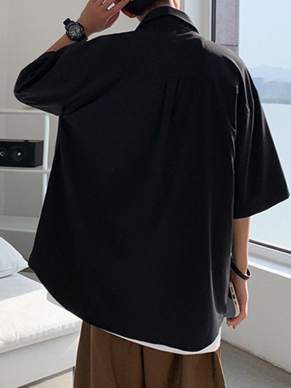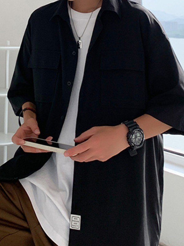 Camisa de hombre de manga corta con bolsillo delantero y botones