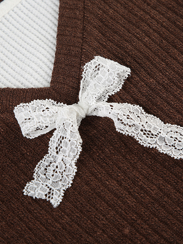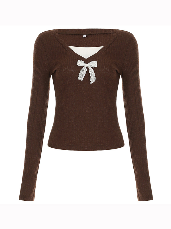 Camiseta de manga larga extragrande con lazo de encaje y color en contraste