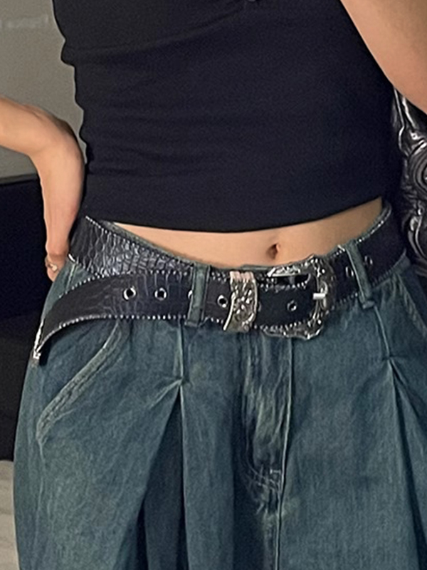 InicioACCESORIOSAccessoriesCinturonesCinturón con hebilla con diseño de cocodrilo grabado vintage