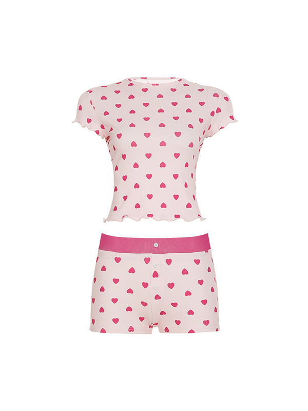 InicioMujerTrajes de Dos PiezasConjunto de dos piezas con borde enrollado y estampado Love