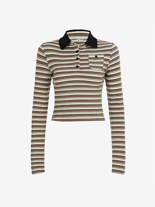 Cuello polo a rayas de manga larga