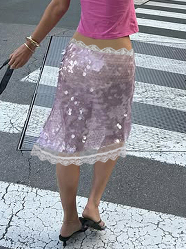 InicioMujerBottomsFaldasFalda larga de encaje transparente adornada con lentejuelas