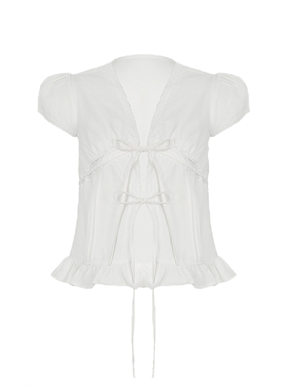 InicioHombreTopsBlusas&CamisasManga corta con ribete de encaje francés