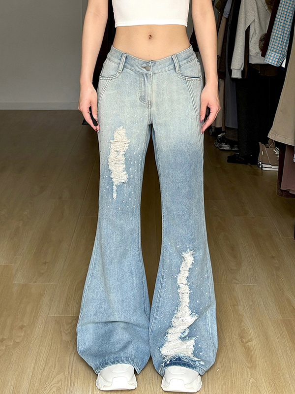 InicioMujerBottomsVaqueros acampanados con lavado vintage americano