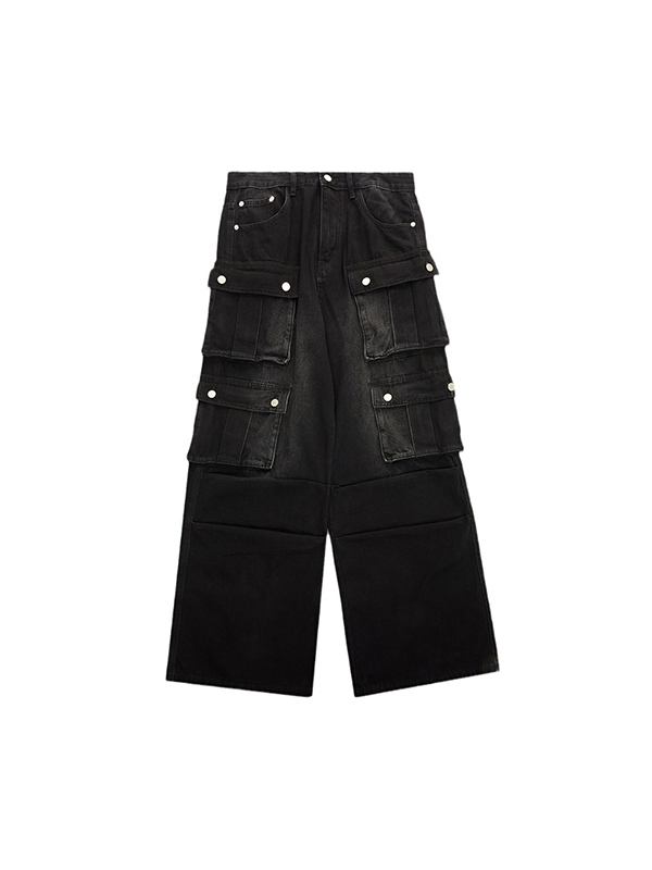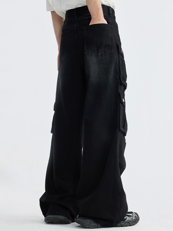 Vaqueros cargo con múltiples bolsillos desgastados y lavados retro