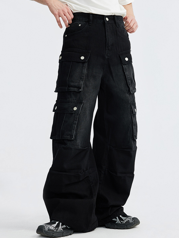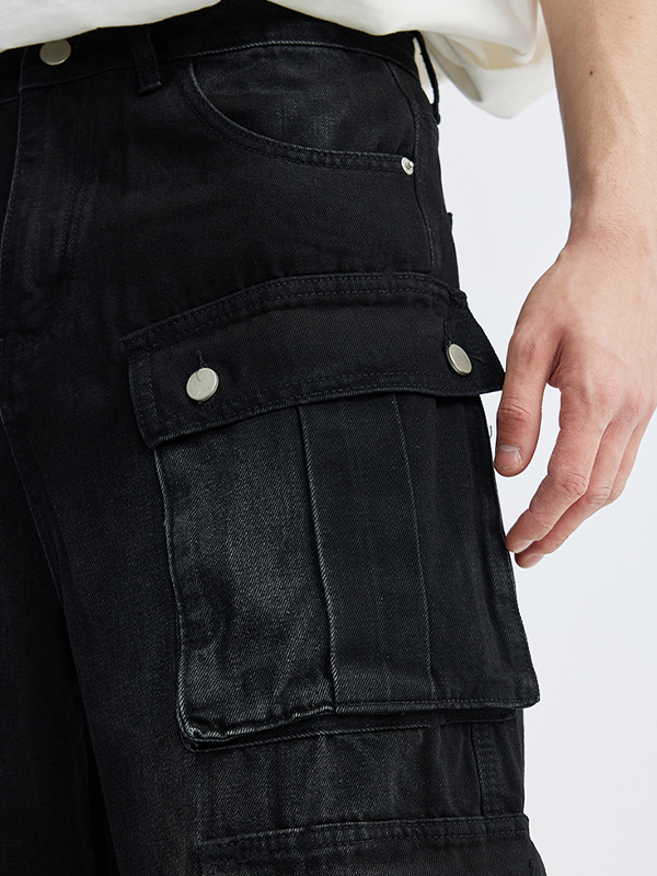 InicioHombrePantalonesPantalones VaquerosVaqueros cargo con múltiples bolsillos desgastados y lavados retro